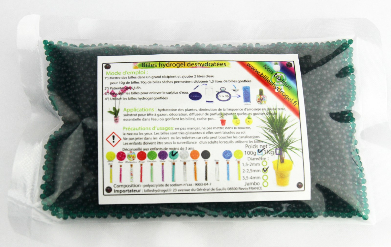 Toutes nos billes hydrogel sont vendues déshydratées. 10 grammes de billes deshydratées permettent d'obtenir environ 1,3 litres de billes gonflées !