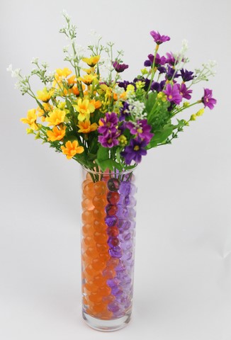 Les billes hydrogel permettent de faire tenir les tiges selon vos souhaits et apportent la couleur complémentaire à votre décoration.