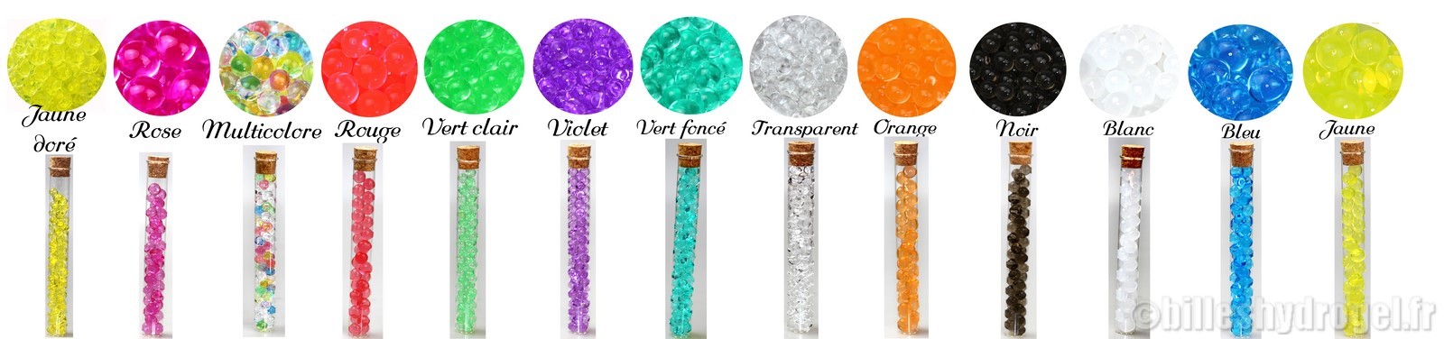 Nous pouvons distinguer les billes très petites dites "caviar" qui, une fois gonflées, mesurent 6 à 7mm de diamètre. Les billes moyennes gonflées mesurent 10 à 12mm et les grosses billes 15mm.